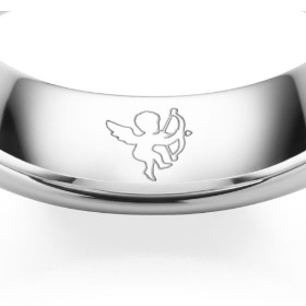A snippet of text or a saying can be engraved on the inside, as well as the outside of the ring. An inside text is more of a hidden love message. A saying engraved on the outside of the ring is a visible design element.